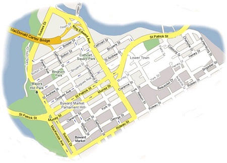 ![]() Map of Lowertown as it is today. What is a One-Place Study?A One-Place Study researches the history of a place and its residents. In many ways it is similar to a more traditional local history but with the emphasis on the people and their occupations, life expectancy, migration in and out of the place, and so on. The Lowertown One-Place Study covers the combined parishes of Notre-Dame, Ste-Anne and St-Brigid. It is hoped that this site will be of some interest to those with connections to Lowertown Ottawa – including those who, like myself, have ancestors who lived or worked in the area, and those who now live there. The sources used include the parish registers, registers of births, marriages and deaths, census and other public records. This is a work in progress. If you find any errors or omissions, please do let me know. If you have additional information, I would be delighted to hear from you. As in most other parts of Ottawa, the population of the Lowertown is subject to constant changes, the biggest in last late 1960's. People moving in and out, often linked to work and employment but also other reasons such as marriage. Some of the families listed were residents for many generations - others for less time. Please note that names have been been entered as seen in the documents spelling variations in some cases caused a some confusion, if you do not find what you are looking try different spelling variations.